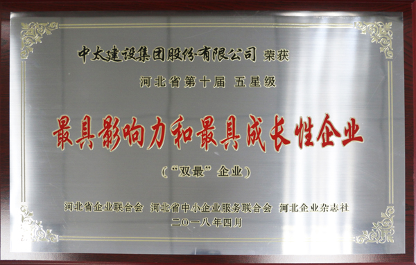 近日,河北省企業聯合會第六屆會員代表大會第二次會議暨2018年河北省企業管理創新大會在石家莊召開,會議通報《河北省第十屆“最具影響力”“最具成長性”“最受關注企業家”評審結果》。中太建設集團獲評五星級“最具影響力和最具成長性企業”(“雙最”企業)、“河北省明星企業”,李文健同志被授予“最受關注企業家”、“河北省優秀企業家”稱號。