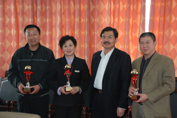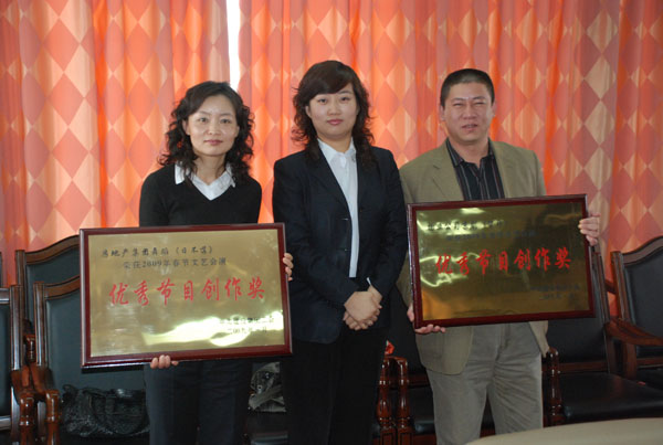 隨后,工會主席鐘崇鶴、副主席張娟分別為2009年春節職工文藝匯演受獎單位和個人頒發了獎牌和獎杯。